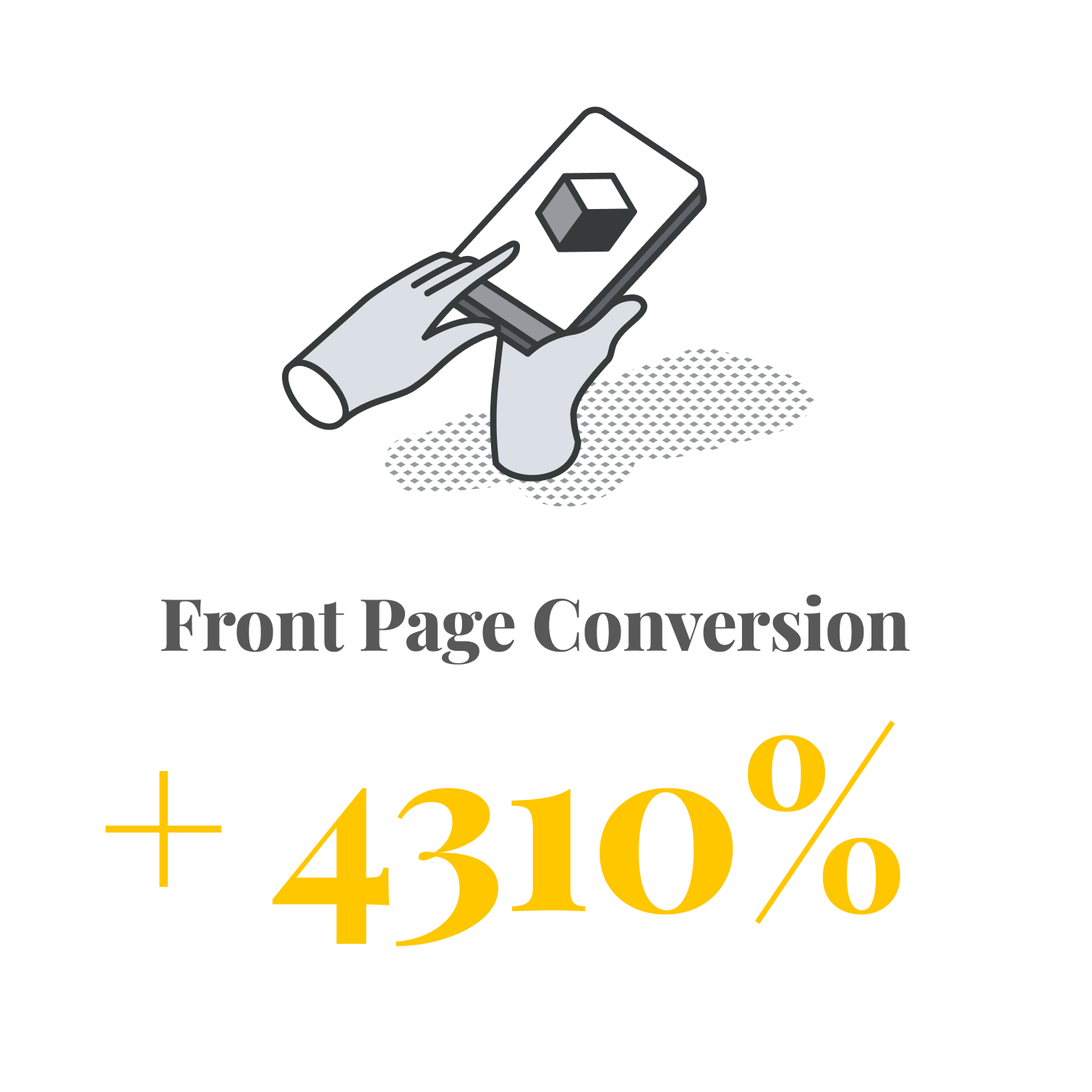 Sometimes, great improvements can result from very simple adjustments. Here's a comparison of the wireframes for the front page banner design before and after our enhancements. With subtle improvements in visuals, copywriting, and button layout, we witnessed an astounding +4310% increase in the front page conversion rate overall.